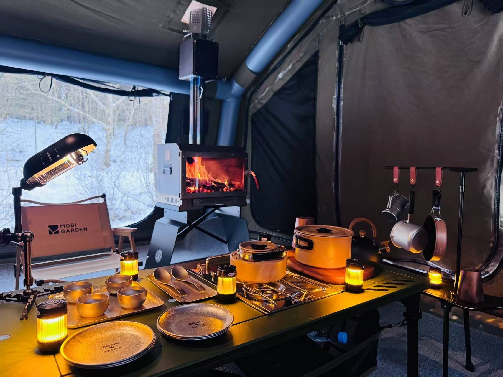 夜幕到临,雪色浪漫重溺区风味全部,朝家屋样板屋、雪地露营帐篷、水晶泡泡屋灯火璀璨,围炉煮茶与东北守旧小食摊烟火气交错,线上直播专场传达冰雪庆贺。